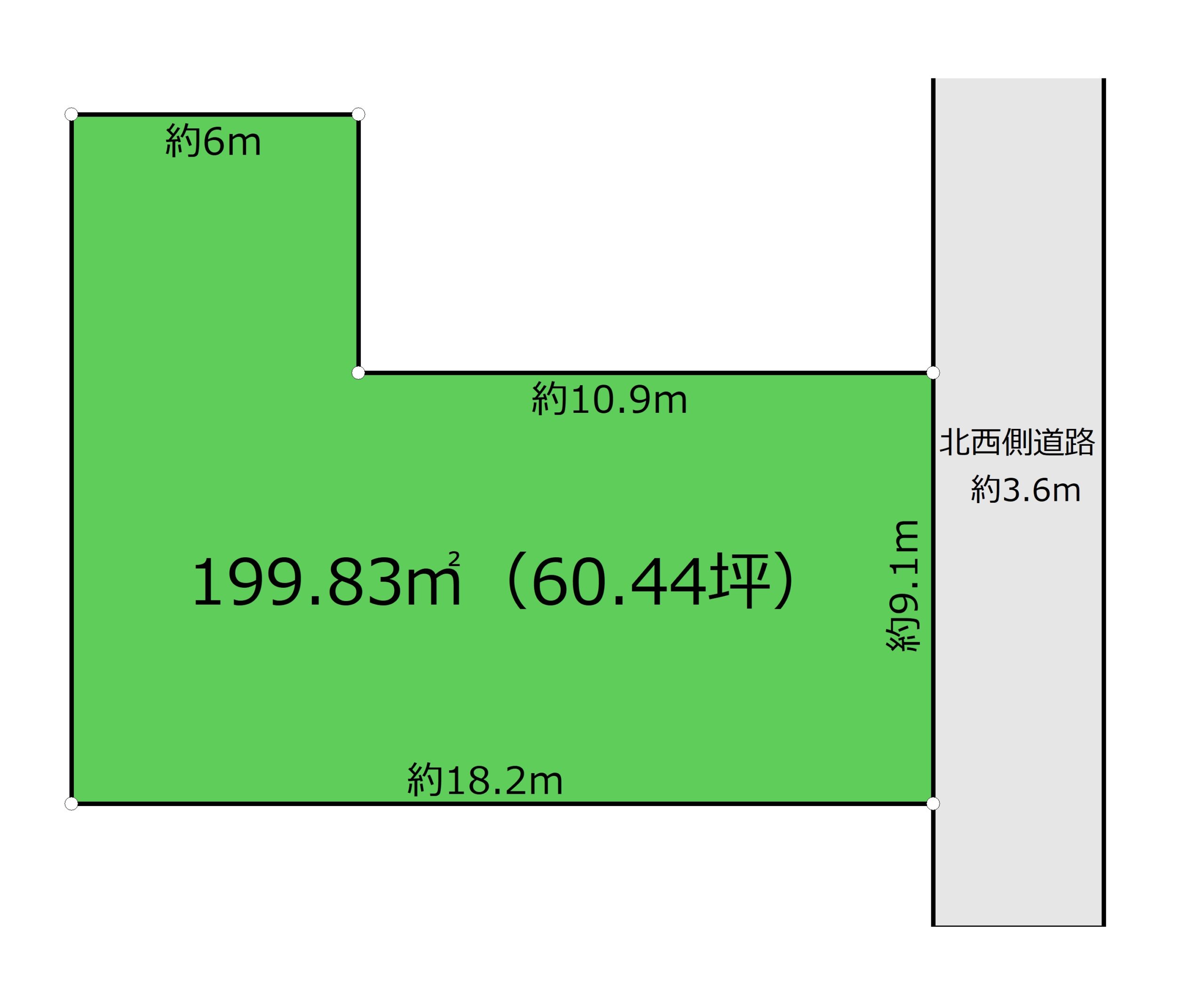 状況:一方 北西側 幅員3.6m 公道に9.1m接面