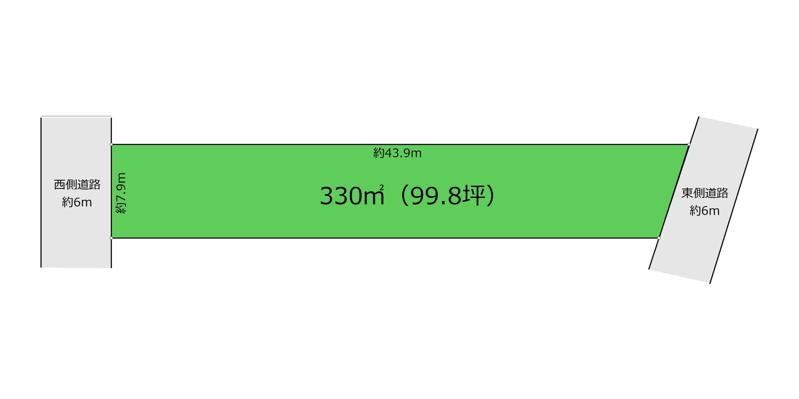 状況:二方 西側 幅員6m 公道に7.9m接面 東側 幅員6m 公道に8m接面