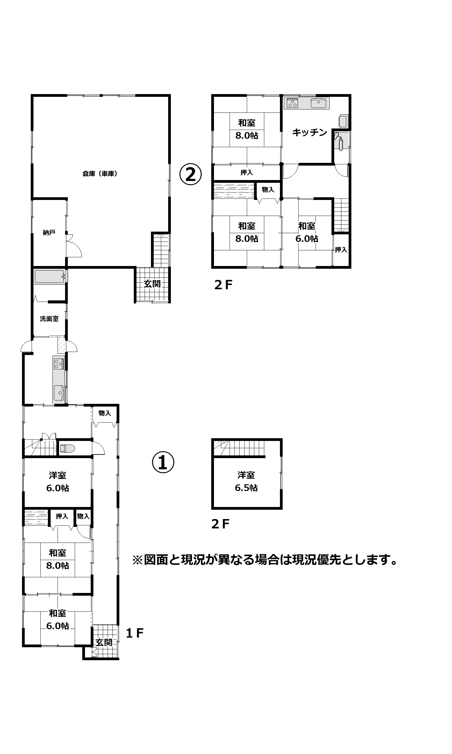 ・木造瓦葺2階建ては昭和58年築(※間取り②部分)